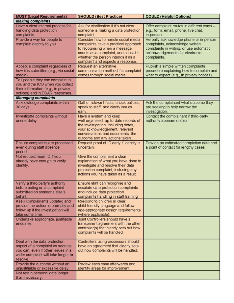 This post will specifically look at the requirement to manage Data Protection complaints. If you don’t already do so, the DUAA requires you to take steps to help people who want to make complaints about how you use their personal information, such as providing an electronic complaints form. You also have to acknowledge complaints within 30 days and respond to them ‘without undue delay’.